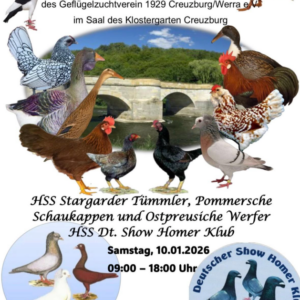 Wir schließen unsere Hauptsonderschau der Saison 2023 / 2024 an die 2.Creuzburger Taubenschau an. Termin: 12. bis 14.Januar 2024 In: […]